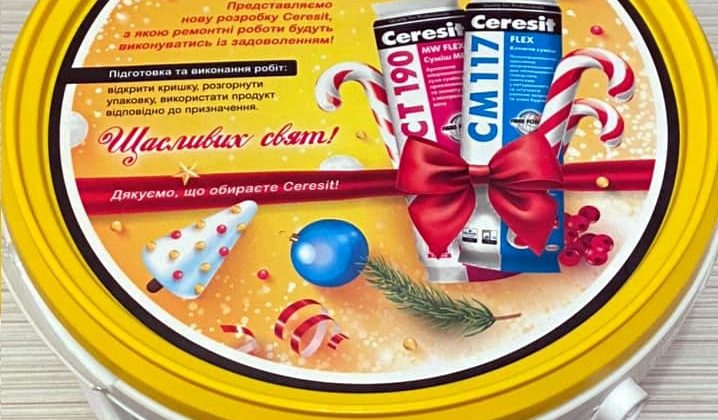 В прошлом году концепция подарка заключалась в изготовлении конфет из чернослива и кураги в индивидуальной упаковке, помещенных в ведра, в которых продаются смеси Ceresit. В этом году концепция немного поменялась: