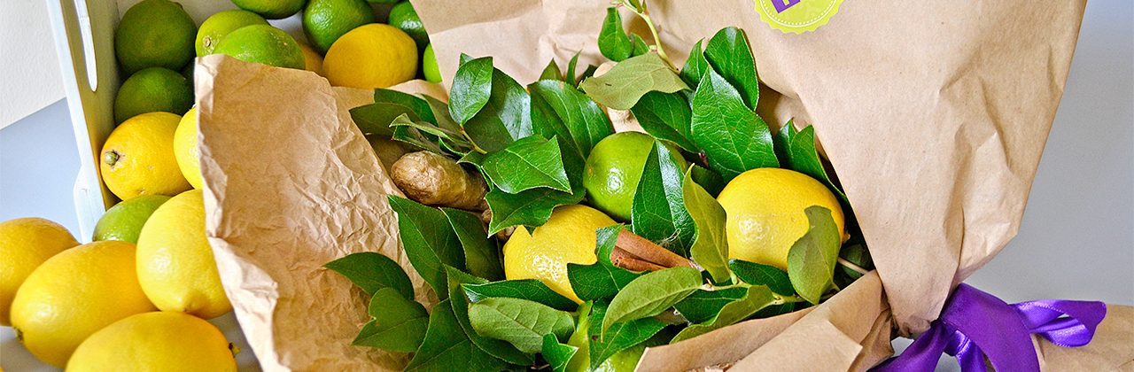 РЕАЛИЗАЦИЯ: Нам очень хотелось подготовить оригинальное и стильное поздравление. А что может порадовать женщину в этот весенний праздник, конечно же – букет цветов. Но, обычный букет нам показался слишком банальным. Мы решили заменить цветы на что-то другое – лимоны, лаймы, имбирь, корицу. Цитрусы сделали букет ярким и сочным, палочки корицы добавили аромата, а фактурный имбирь послужил замечательным декором! Каждый букет был дополнен флористической зеленью и упакован в крафт, которые еще больше подчеркнул насыщенность желтых и зеленых оттенков букета.